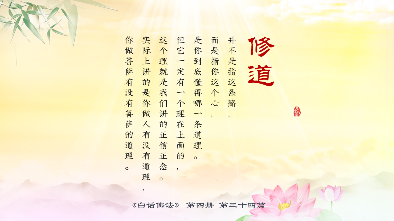 不限会员 4-34-32 修道并不是指这条路,而是指你这个心,是你到底懂得哪一条道理。但它一定有一个理在上面的,这个理就是我们讲的正信正念.【图】